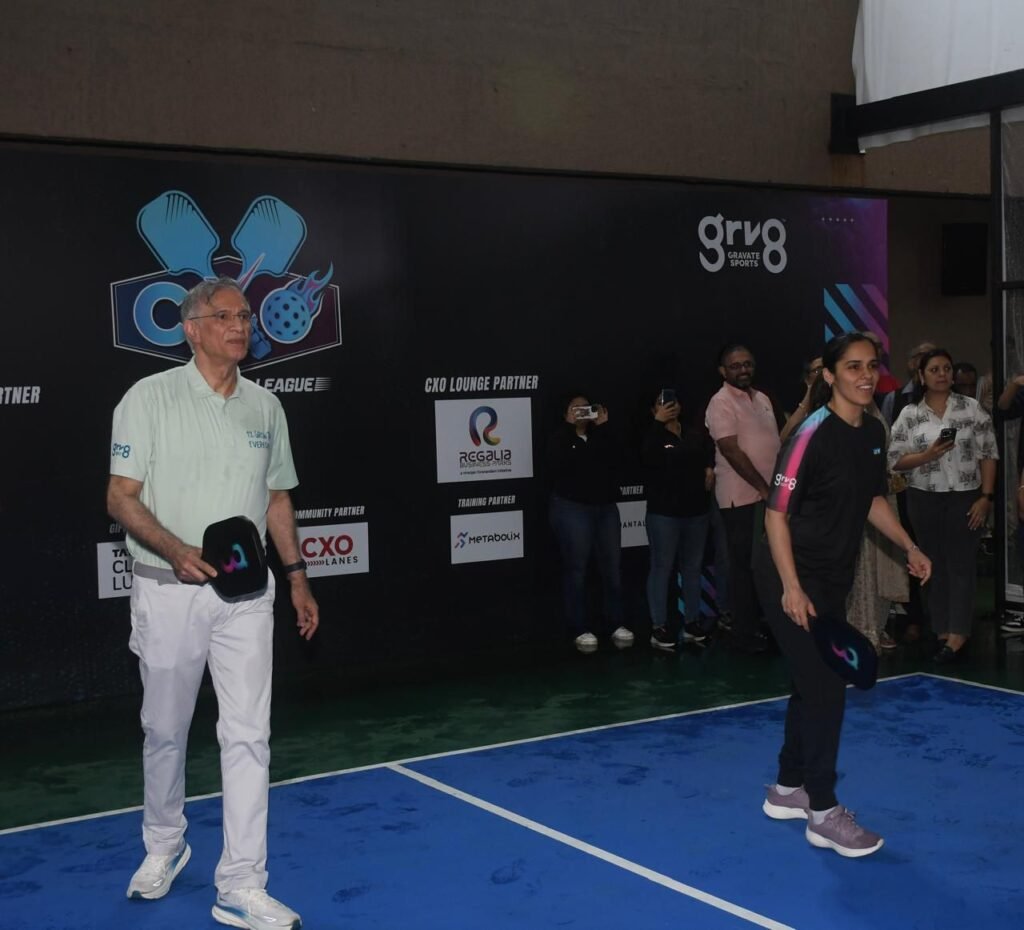 Mumbai, India- Gravate Sports (grv8), founded by RJ Anmol and Puneet Goyal, launched the country’s first CXO Pickleball League, bringing corporate leaders and sports lovers together for a day of high-spirited play. The event’s highlight came when badminton legend Saina Nehwal paired up with real-estate magnate Dr. Niranjan Hiranandani for a friendly doubles match that delighted spectators. In a fun finale, Dr. Hiranandani proudly accepted a racket personally autographed by Saina.